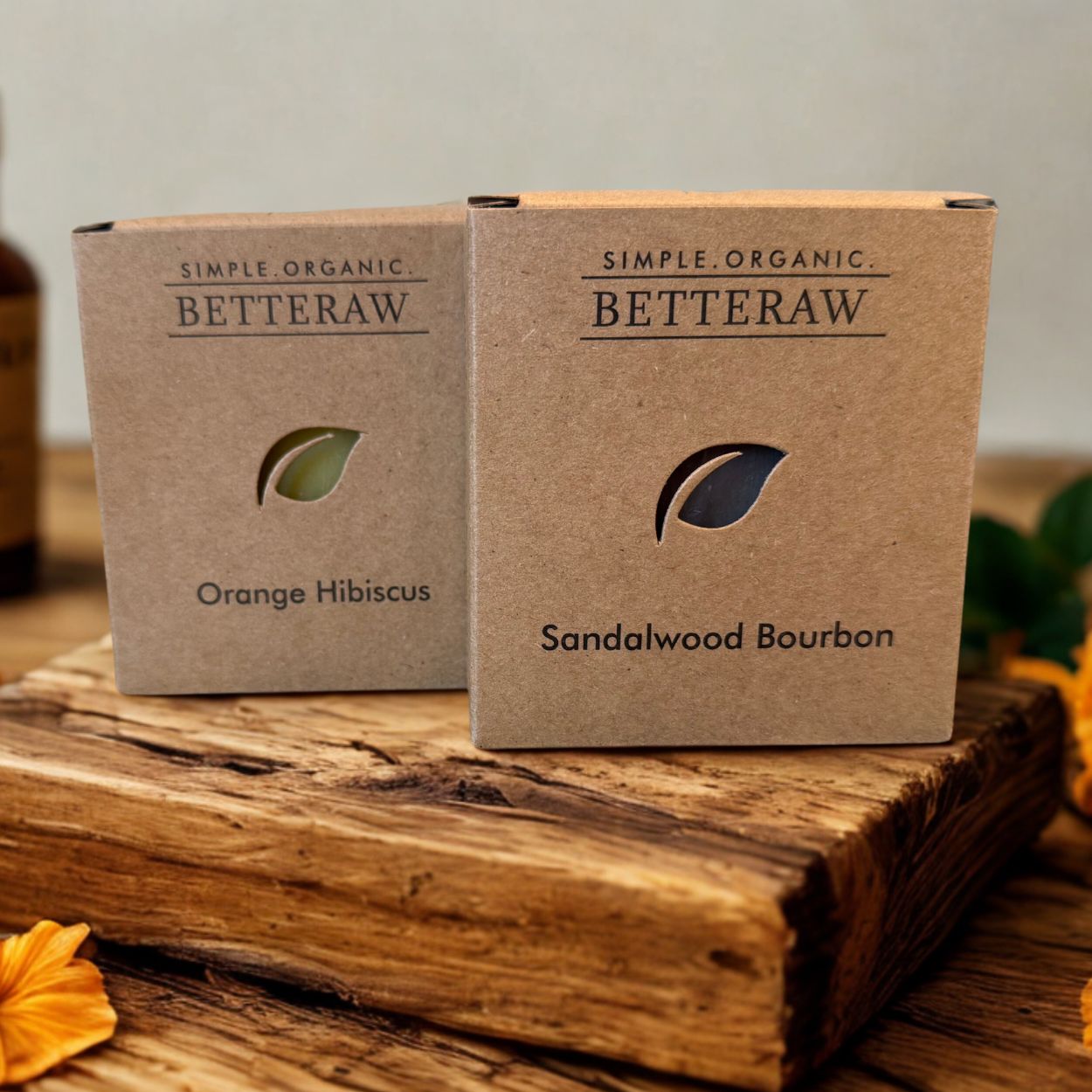 Indulge in a sensory escape with this handcrafted soap duo that blends the richness of nature with a touch of bold sophistication.
